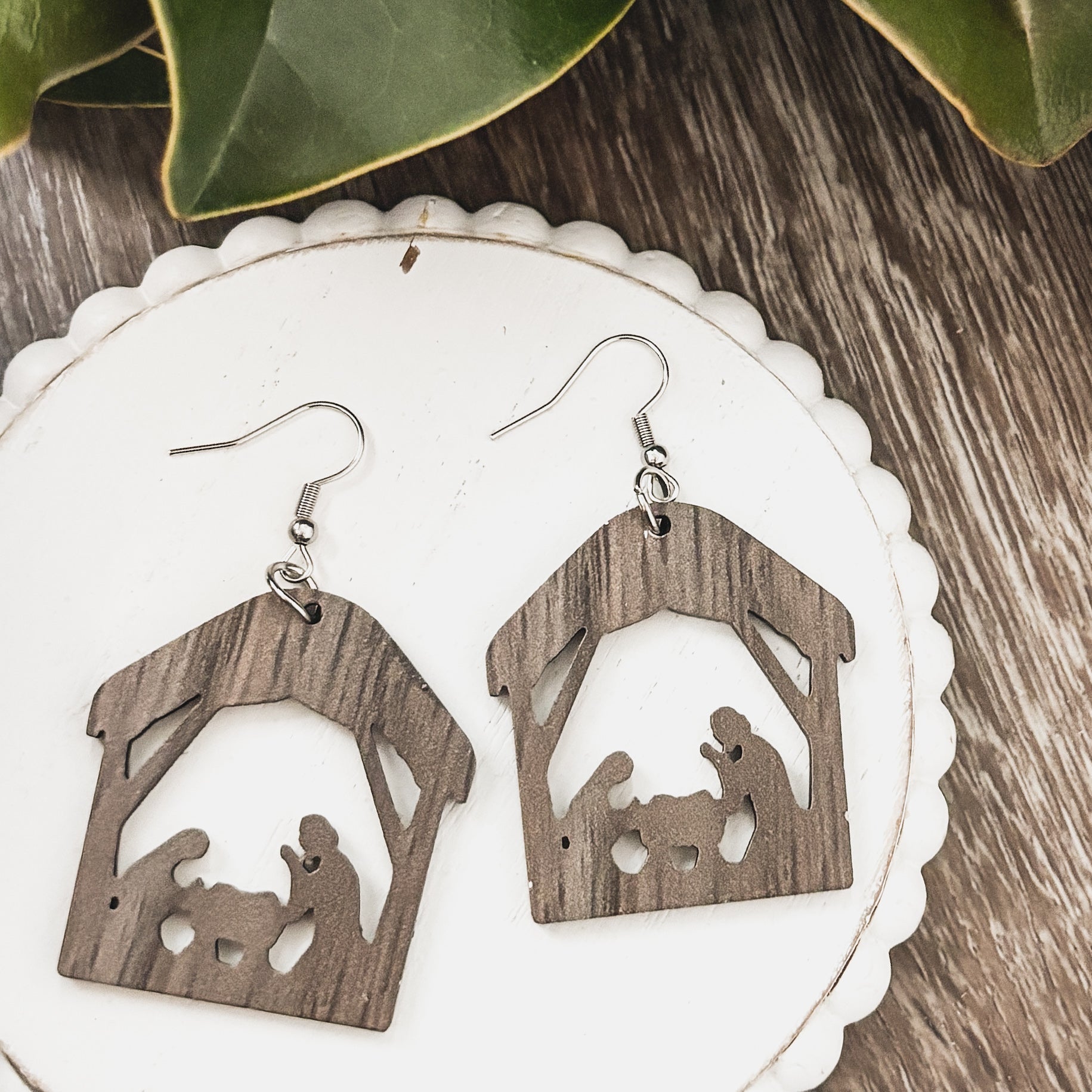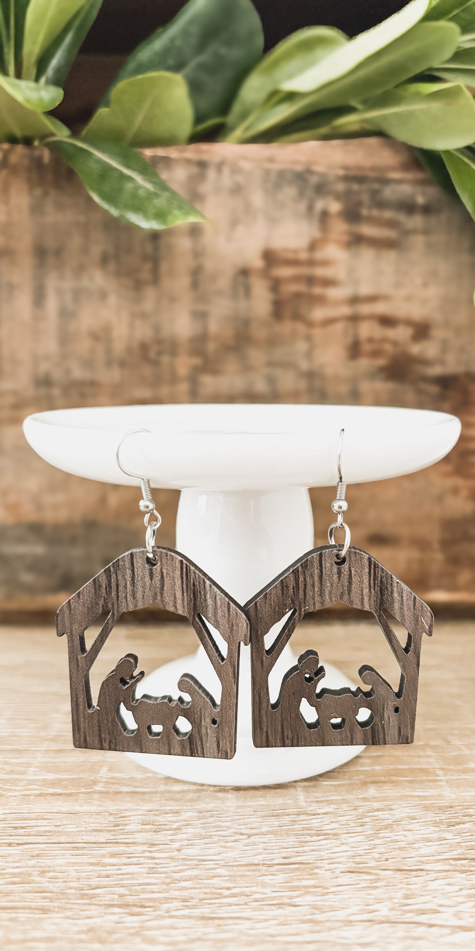 Showcase the true reason for the season with these beautiful Christmas Nativity Earrings. Crafted with a delicate wood design, each pair features the manger scene with Mary, Joseph, and the stable.
