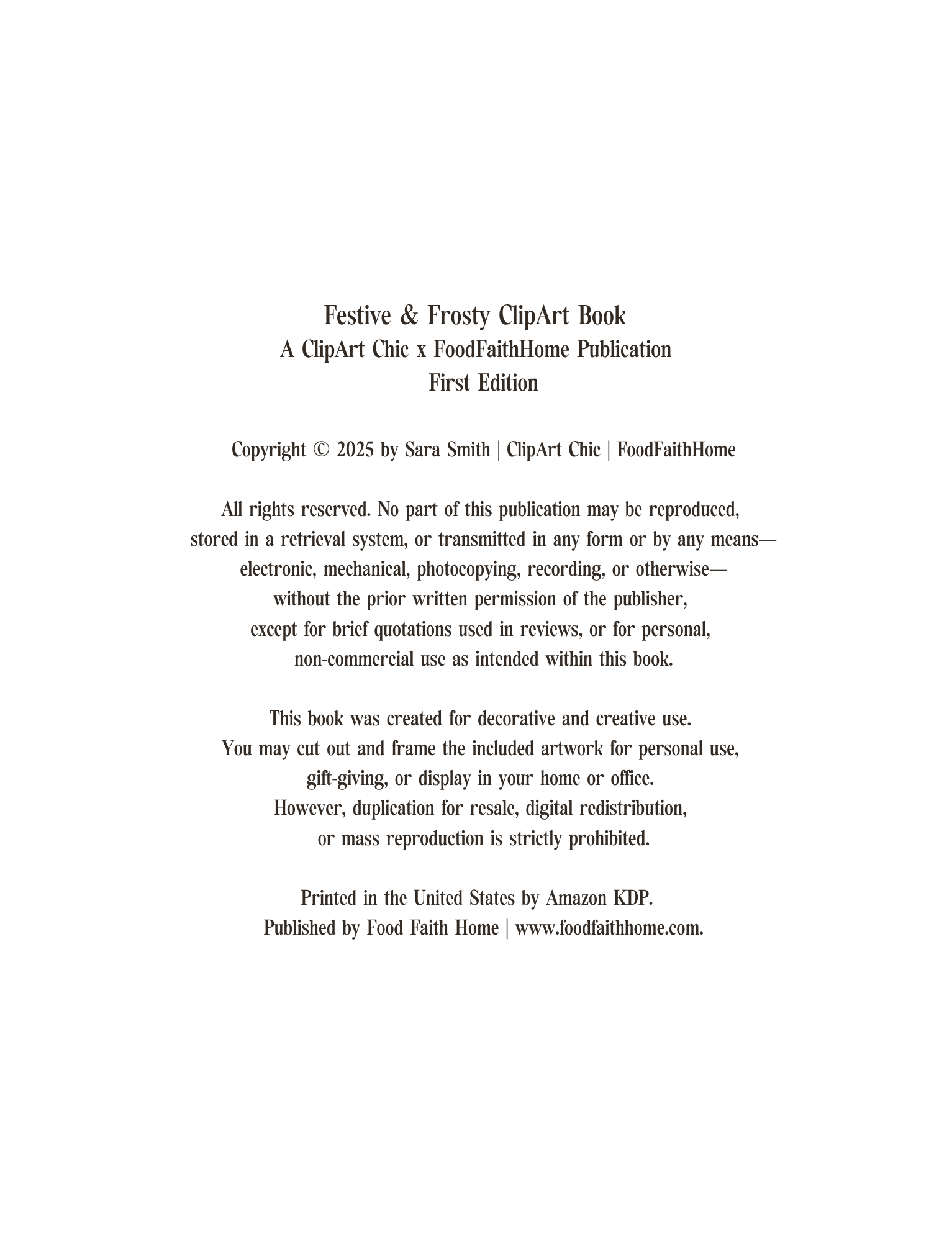 Skip the shipping and dive right into the holidays with the digital edition of our Festive & Frosty Clipart for Christmas. This instant download gives you 48 pages of printable art, tags, recipe cards, and holiday helpers—all ready to print at home or your favorite print shop. Perfect for decorators, crafters, bakers, and gift-givers who love the magic of Christmas but want the ease of digital files.