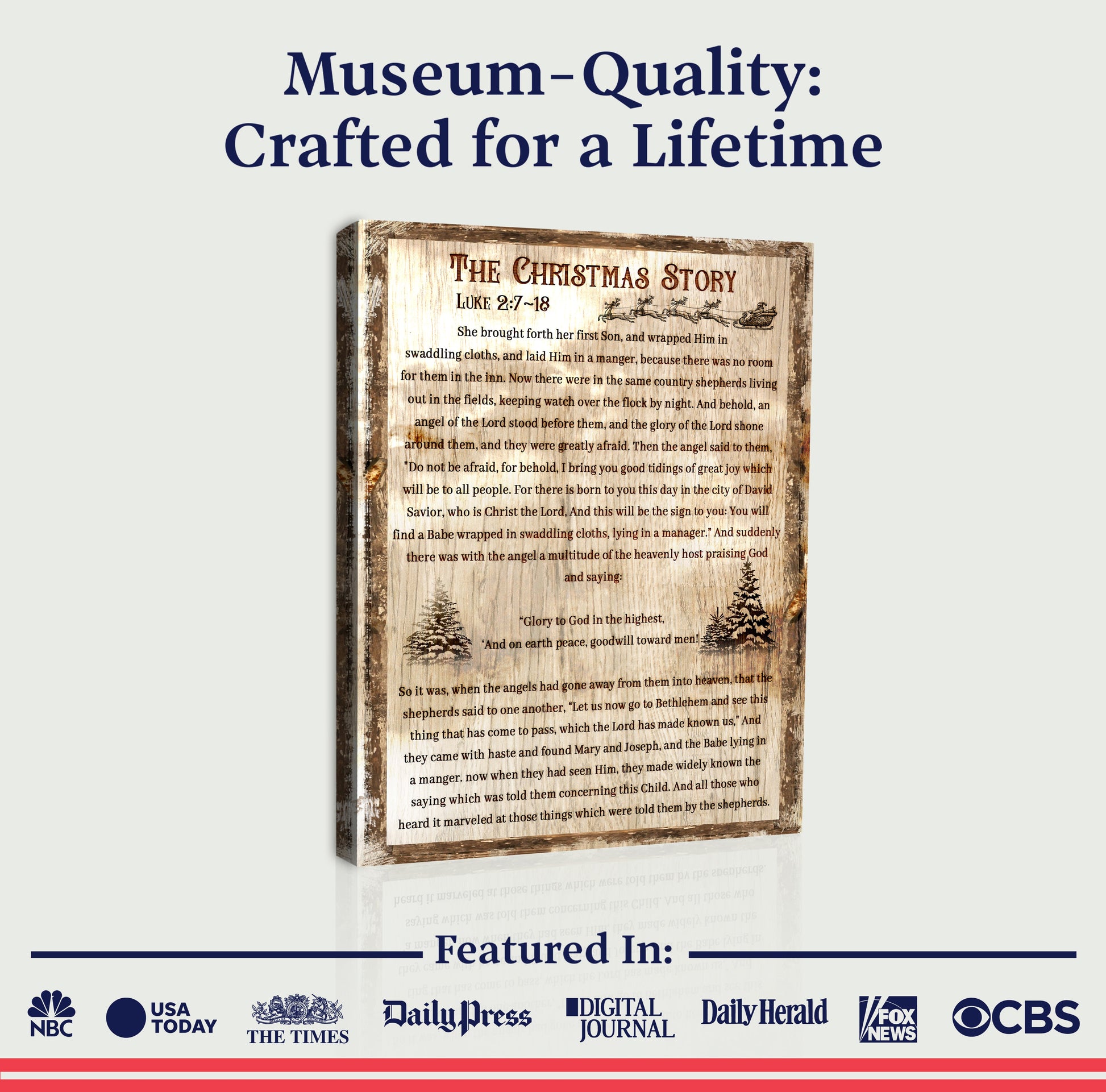 Celebrate the true meaning of Christmas with The Christmas Story Canvas Wall Art II from Tailored Canvases. Designed to look like it’s printed on rustic wood, this canvas beautifully shares the story of Christ’s birth from Luke 2:7–18.